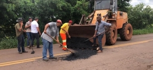 A prefeitura de Terra Boa tapou buracos no trecho urbano da PR-082.