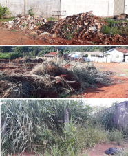 "Entrada do jardim Modelo e Esperança. O mato e os entulhos tomando conta dos terrenos e o mosquito da dengue fazendo a festa. Será que não tem ninguém pago na prefeitura pra fiscalizar isso?"