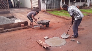 Rua Higienópolis, Lar Paraná. Moradores inconformados se unem para uma pequena operação tapa buracos.