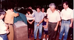 Figuras - Na foto, além do prefeito, aparecem o vereador Edson Battilani, que era secretário de Agricultura e Meio Ambiente, e o deputado federal Ricardo Barros, que ja´era federal nessa época.