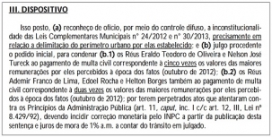Além do então prefeito Nelson Tureck, estão na ação o então presidente da Câmara, Eraldo Teodoro, e os vereadores Ademir Pezão, Edoel Rocha e Helton Borges. Foram incluídos os vereadores que deram parecer em Comissão Especial. Todos podem recorrer contra a decisão.