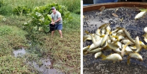 O peixe está sendo solto em áreas alagadas próximas à cidade.