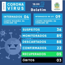 Saiu o boletim desta terça-feira do Covid-19 em Campo Mourão.
