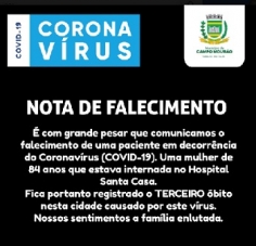 Campo Mourão é cidade do Paraná com maior número de mortes por coronavíus: três.