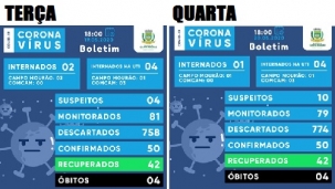 Poucas novidades no boletim covid-19 de Campo Mourão desta quarta-feira. Pelo segundo dia seguido não foram confirmados novos casos. Também não houve pacientes recuperados, nem alteração no número de leitos ocupados na UTI. De notícia boa, a diminuição de dois para um de internados na enfermaria. De ruim, o aumento de quatro para 10 no número de casos suspeitos.