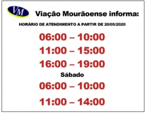 A Viação Mourãoense está com novos horários de ônibus, em Campo Mourão, partir desta quarta-feira. Agora a circular funciona de segunda a sexta e três horários - das 6h às 10h, das 11h às 15h e das 16h às 19h. Aos sábado é das 6h às 10h e das 11h às 14h. Os horários diferentes são por causa da covid-19.