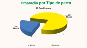 Dos 455 partos em Campo Mourão de janeiro a abril, 351 foram cesarianas. Os números foram apresentadas em audiência pública de prestação de contas da Secretaria de Saúde. O percentual de partos naturais - 22,84% - está baixo do pactuado como SUS. A meta é que pelo menos 35% dos nascimentos sejam naturais.
