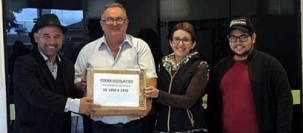 Arléto Rocha, historiador, ao repassar o material para o presidente da Câmara, Barão Rodrigues.