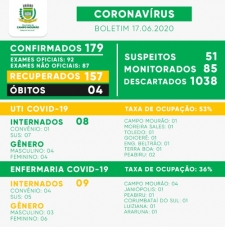 A prefeitura de Campo Mourão mudou o boletim covid-19 nesta quarta-feira. Passou a incluir os exames não oficiais. Aí os casos confirmados saltaram para 179 (os 92 oficiais mais 87 não-oficiais). Só que os recuperados também tiveram salto e foram a 157. Os casos suspeitos subiram de 39 para 51. Na UTI seguem oito leitos ocupados (um mourãoense) e na enfermaria nove (quatro de Campo Mourão).