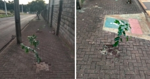 "Calçada recente, pessoal plantado árvores, boa iniciativa, porém qual é o critério para plantar bem no meio da calçada? Por onde passa o pedestre? Problema recorrente na cidade onde é difícil de achar um quarteirão trafegável para o pedestre, ainda fazem rampas de acesso, para o deficiente trafegar, onde? Só faltou plantar a árvore na rampa. Qual é o critério? Quando o poder público vai tomar uma atitude?"