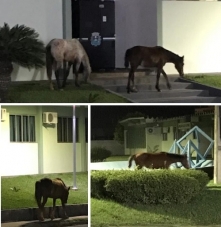 As fotos são desta quarta-feira à noite. Cavalos foram flagrados pastando em pleno quintal da prefeitura de Goioerê.