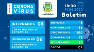 Já são 20 casos de coronavírus confirmados em Campo Mourão apenas este mês. O 20.o foi nesta sexta-feira, elevando para 73 desde o início da pandemia. O número de casos recuperados subiu de 52 para 54. Os suspeitos subiram de 13 para 15. As internações na enfermaria caíram de nove para oito, mas na UTI aumentaram de cinco para seis (uma de Campo Mourão).