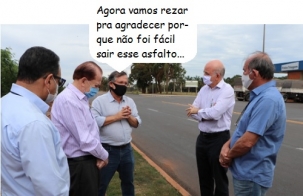 O clic é desta terça-feira na "entrega" do asfalto em trecho do acesso ao parque industrial da Coamo. A obra custou R$ 2,8 milhões financiados pelo governo do Estado (era um daqueles financiamentos pedidos pela então prefeita Regina Dubay que não saíram). O prefeito Tauillo Tezelli e o presidente da Coamo, José Aroldo Gallassini, estiveram por lá.