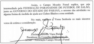O clube de Campo Mourão chegou a enviar caderno de medidas para a FPFS, com sugestões para o retorno.