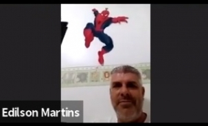 3) O vereador Edilson Martins iniciou a sessão "com a proteção" do Homem-Aranha. Na telinha dele o super herói da Marvel aparecia de corpo inteiro, jogando sua poderosa teia...
