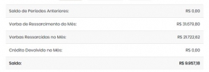 Dos R$ 31,6 mil que tinha direito, só gastou R$ 21,7 mil, ou seja, fechou o mês com sobras de R$ 9,9 mil.