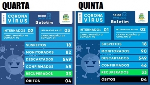 Subiu para 46 o número de casos confirmados de coronavírus em Campo Mourão. É o que mostra o boletim divulgado pela prefeitura nesta quinta-feira. Outros números que tiveram alterações foram positivos. Por exemplo: os internados na UTI eram três e agora são dois. Os internados na enfermaria eram dois e agora são um. Os casos suspeitos (18) e os recuperados (33) são os mesmos do dia anterior.