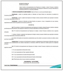 Por causa do estado de calamidade pública, as compras são feitas com dispensa de licitação.