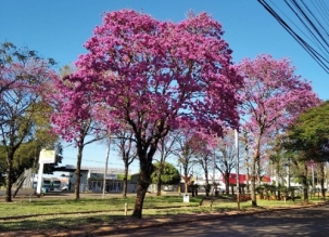 Lindo exemplar de ipê dando boas vindas aos visitantes bem na entrada de Campo Mourão para quem vem de Maringá.