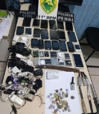 O que é isso? Feirão de celulares? Não! São aparelhos que estavam com os presos de Engenheiro Beltrão. Foram descobertos em operação bate-grade realizada nesta quinta-feira. Contou? Vinte e um celulares e vários carregadores. Isso sem contar facas, cachimbos para cracks e 35 porções de maconha embaladinhas. A cadeia está com 45 presos, ou seja, praticamente a metade tinha celular.