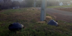 Papai Noel antecipado no Parque das Acácias. Moradores estão reclamando do lixo jogado na rua Abelar Gonçalves Neto.