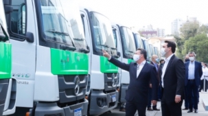 O governo do Estado entregou nesta quarta-feira 16 caminhões de coleta seletiva (tipo baú), 20 caminhões-pipa e 15 caminhões compactadores de lixo orgânico para 48 municípios (seis da região). Investimento de R$ 11,2 milhões do IAT, vinculado à Secretaria do Desenvolvimento Sustentável e Turismo. Por isso mesmo o secretário Márcio Nunes participou da entrega ao lado do governador Ratinho Jr.