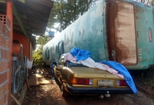 Um ônibus ficou sem freio e tombou nesta segunda-feira em Barbosa Ferraz. O busão era usado para transporte de trabalhadores rurais, mas estava apenas com o motorista na hora do acidente. Além do susto, ele teve ferimentos leves. O ônibus tombou em cima de um Opala que estava estacionado numa casa. O carro ficou destruído.
