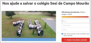 Alunos e ex-alunos do Colégio Sesi de Campo Mourão iniciaram abaixo-assinado pela internet.
