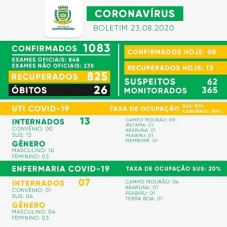 Houve 13 recuperados e eles agora são 825 (os óbitos são 26).