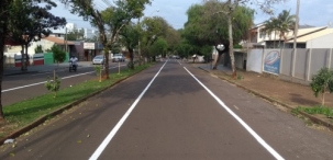 Ao pintar a sinalização horizontal na av. José Custódio de Oliveira, a prefeitura de Campo Mourão "esticou" em duas quadras o trecho com estacionamento junto ao canteiro central. Agora vai até a rua Roberto Brzezinski. Abre mais vagas, mas a via fica estreitinha, diminui a velocidade e impede ultrapassagens.