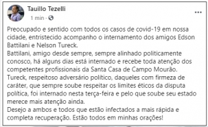 O prefeito de Campo Mourão, Tauillo Tezelli, lamentou nesta quarta-feira o internamento do ex-prefeito Nelson Tureck.