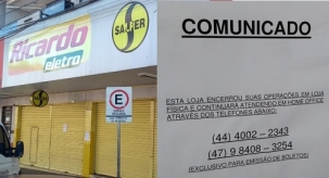 A rede de lojas Ricardo Eletro fechou a filal de Campo Mourão. Na porta, apenas um aviso sobre o encerramento da loja física e números de telefonas para quem precisar emitir boletos. A unidade na rua São Paulo funcionava desde 2005, quando foi inaugurada como Salfer. A Ricardo Eletro está fechando mais de 200 filiais em todo o País. Em Goioerê já tinha encerrao as atividades na semana passada.