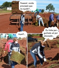 Os cliques são de Farol, onde a prefeitura trabalha na revitalização do trevo de entrada da cidade. Nesta quinta-feira a prefeita Angela Kraus foi conferir os trabalho de perto e acabou ajudando a carregar a grama nova. É mais uma da série "Não basta ser prefeita, tem de participar"...