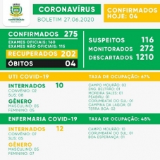 Foram mais quatro casos confirmados em 24h, totalizando 275.