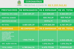 4) Até agora a prefeitura recebeu R$ 9,2 milhões, sendo que R$ 4,7 milhões já foram repassados. Um quadro foi mostrado sobre a destinação do dinheiro.