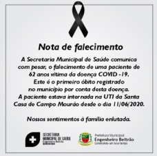 Uma mulher de 62 anos que morava em Engenheiro Beltrão é a 31ª pessoa a morrer de coronavírus na região. Foi o primeiro óbito do município. Segundo a Secretaria de Saúde, ela estava na UTI da Santa Casa de Campo Mourão desde 11 de junho.
