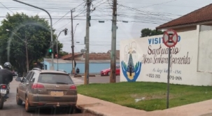 Carro estacionado em Campo Mourão em frente a placa de "proibido parar e estacionar".