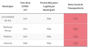 Dos 25 municípios da região, sete foram considerados "insatisfatórios" na transparência dos dados da covid-19.