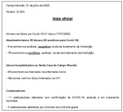 Subiu para 26 o número de internos do Lar dos Velhinhos de Campo Mourão com covid-19.