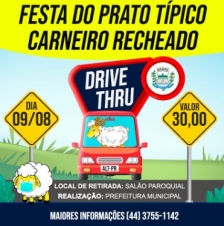 Depois do carneiro no buraco, de Campo Mourão, agora é a vez do carneiro recheado, prato típico de Altamira do Paraná, ganhar sua versão drive thru. Será no próximo dia 9 de agosto (Dia dos Pais). A realização é da prefeitura altamirense e o prato deverá ser retirado no salão paroquial. Os convites estão à venda por R$ 30.