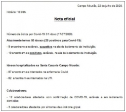 O número de funcionário do asilo com covid também subiu. Agora são 12, todos em isolamento domiciliar.