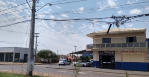 "A prefeitura revitalizou a av. Pedro Viriato e remanejou os postes pro canteiro central. No entanto, as empresas de telefonia não fizeram sua parte. Diversos fios caídos. Além de feio, está perigoso".