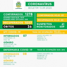 Caiu para 205 o número de moradores de Campo Mourão que estão com o vírus da covid-19 ativo. É o que mostra o boletim deste domingo. Foram três novos casos confirmados e cinco recuperações. No total, agora são 1.278 casos desde o início da pandemia e 1.037 recuperados, além de 36 mortes.
