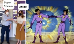 Em tempos de coronavírus, cumprimento no máximo é assim. Agora, cá pra nós: que na hora da foto a dobradinha Tauillo Tezelli e Fátima Nunes ficou parecendo os Supergêmeos, da animação Super Amigos, de Hanna-Barbera, ficou...