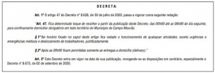 Já o delivery fica liberado sem restrição de horário (antes era até às 23h30).