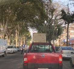 "Assim não dá, né? Parar no meio da rua pra fazer descarga de material..."