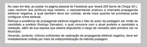 O juiz entendeu como propaganda negativa e estipulou multa de R$ 2 mil por dia caso a postagem continue no ar.