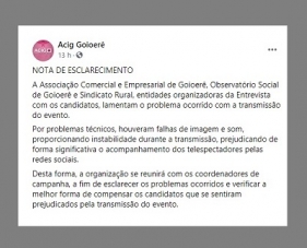 Em "nota de esclarecimento", os organizadores lamentararam as falhas.