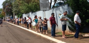 As filas do lado de fora dos locais de votação, alguma na rua mesmo, foram a novidade da eleição deste ano em Campo Mourão. Em alguns lugares, em determinados momentos, elas chegaram a "virar a esquina". O objetivo foi evitar aglomeração em ambientes fechados. Até às 11h a Justiça Eleitoral não tinha registrado nenhum incidente. A foto é do colégiio Vinícius de Moraes, no Cohapar.