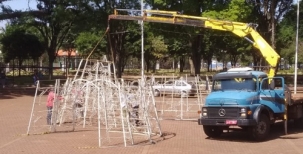 Começou neste sábado a montagem da árvore de Natal da praça São José, em Campo Mourão. O trabalho da Associação Sou Arte foi antecipado. O cronograma inicial previa o início dos trabalhos no dia 16. O espetáculo de abertura, em live, será no próximo dia 29. O comércio começará a abrir em horário especial (até às 22h) no dia 14 de dezembro.